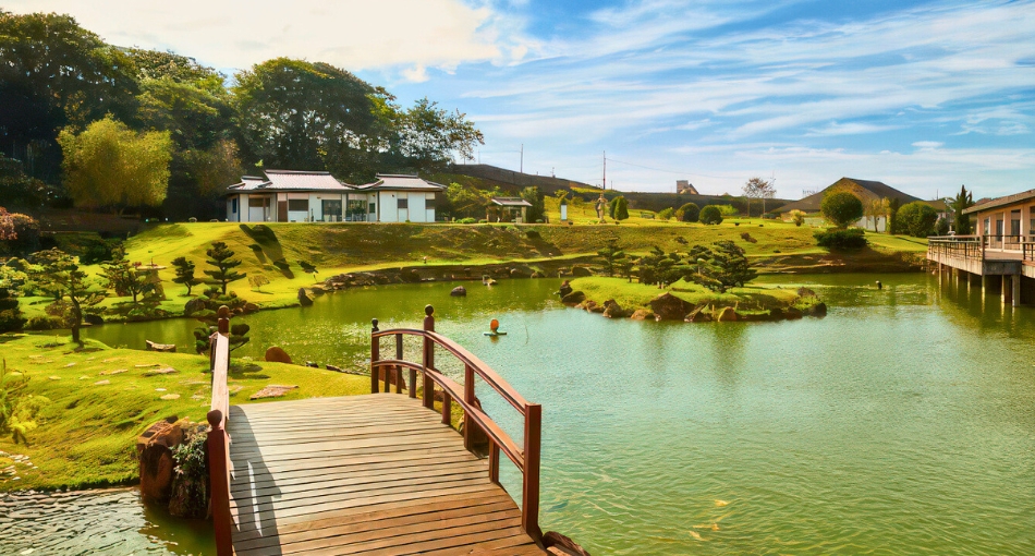✨ Parque do Japão – Maringá/PR Localizado na Rua Tulípa, Jardim Industrial, o Parque do Japão é um dos principais cartões-postais da cidade. 🌸 Com cerca de 100.000 m², o espaço conta com jardim imperial japonês, lagos com carpas 🐟, bonsais, Casa de Chá 🍵, ginásio esportivo e centro cultural 🎎, proporcionando lazer e contato com a cultura nipônica. 📅 Aberto de terça a domingo, das 8h às 18h, com entrada gratuita, o parque é perfeito para passeios em família 👨👩👧👦, fotografia 📸 e eventos especiais. Um lugar imperdível para quem busca tranquilidade, natureza e cultura japonesa em Maringá.